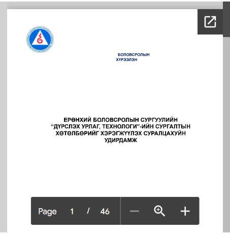 Бага боловсролын ‘Дүрслэх урлаг, технологи сургалтын хөтөлбөрийг хэрэгжүүлэх суралцахуйн удирдамж 1-5-р анги Хөтөлбөр, удирдамж By admin · 4 сар 23, 2022 · 0 Comment Share ‘Дүрслэх урлаг, технологи сургалтын хөтөлбөрийг хэрэгжүүлэх суралцахуйн удирдамж 1-5-р анги