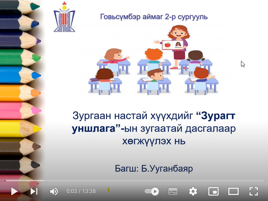 Зурагт уншлага Бүтээлч багш By admin · 6 сар 21, 2022 · 0 Comment Share Зургаан настай хүүхдийг Зурагт уншлагын зугаатай дасгалаар хөгжүүлэх нь