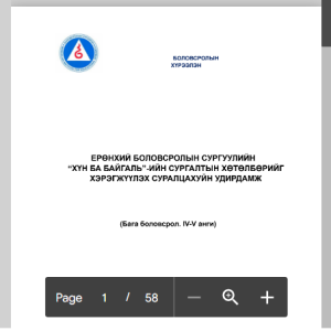Бага боловсролын сургалтын сайжруулсан хөтөлбөр-2019